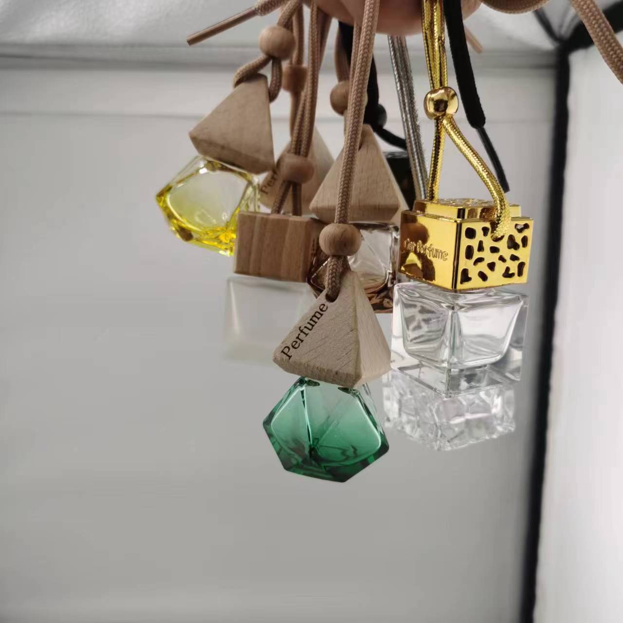 车载透明玻璃香薰瓶车载香水瓶车内装饰品空瓶车载挂件香 水挥发瓶
