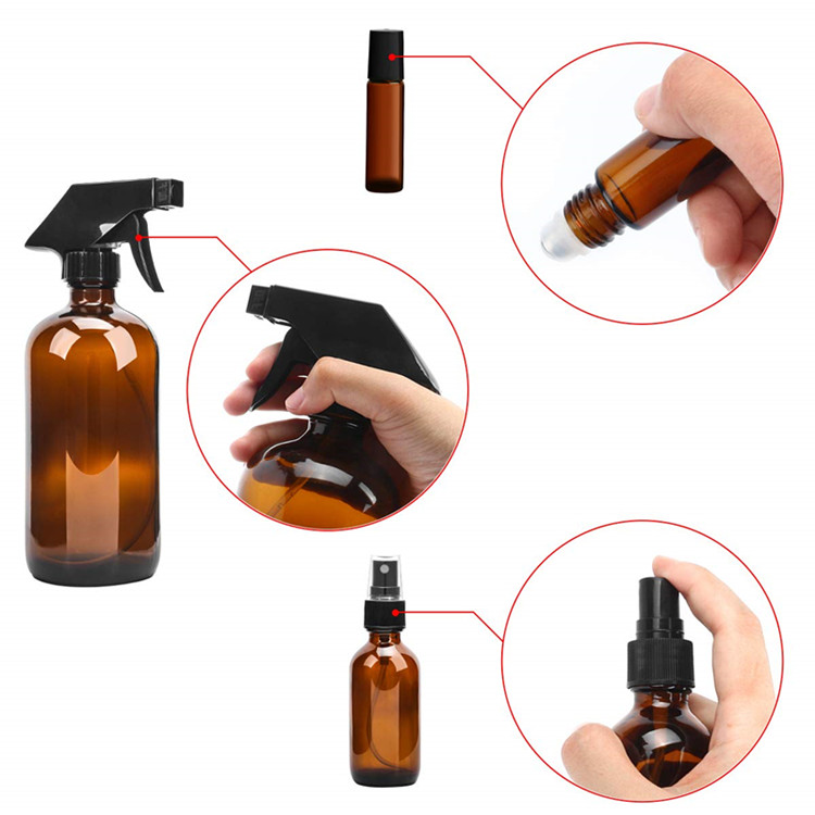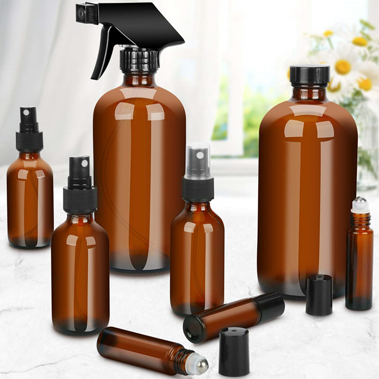 茶色喷雾瓶套装滚珠瓶玻璃瓶材质专供亚马逊平台